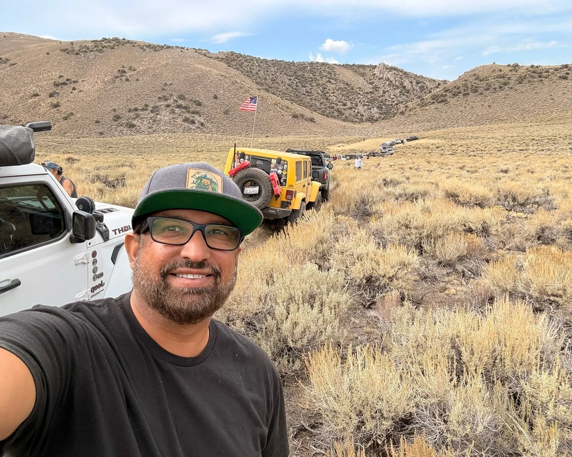 While the MeetUp group assembled among the rigs and gear, Amanda’s Prince Charming rolled in—not on a horse, but behind the wheel of a white Jeep Rubicon named Starlight. Surveying the scene with a watchful eye was Amanda, the group’s latest addition, joined by her ever-faithful sidekick, Mojave (woof!).